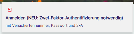 Nach erfolgreicher Eingabe von Versichertennummer und Passwort wird die Zwei-Faktor-Authentifizierung aktiviert. Gehen Sie dann bitte wie folgt vor: